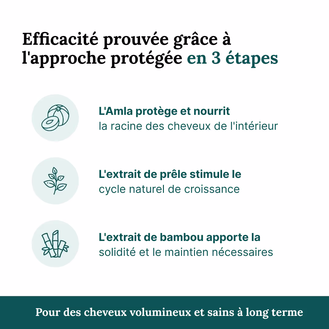 Elle repose sur la combinaison innovante de micronutriments, de principes actifs végétaux et de connaissances modernes en matière de soins capillaires.